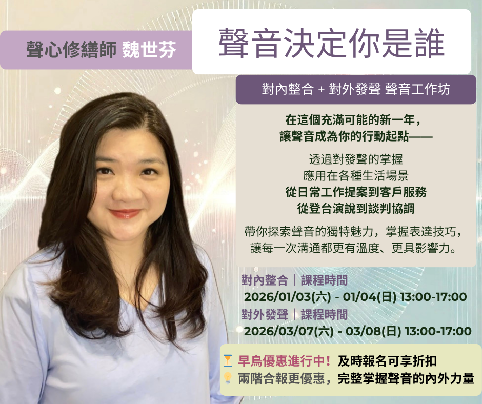 1️⃣ 對內整合:掌握自己的聲音(提案、報告、受訪、聲音投射力、聲音保養)