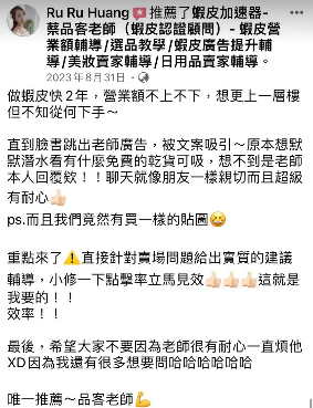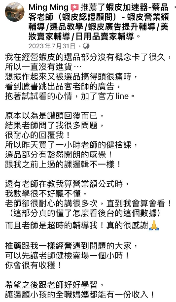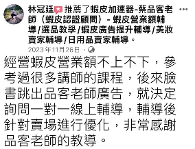 蝦皮的認證顧問、蝦皮電商百萬教練